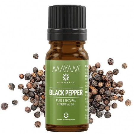 Uleiul esențial extras prin distilare din boabele de piper este util în aromaterapie, parfumerie și cosmetică. Ajută la stimularea circulației periferice și are o acțiune accentuată de încălzire, este recomandat pentru creme anticelulitice, tonifiante, pentru dureri musculare sau reumatismale, pentru membre reci. Este antalgic și afrodisiac. Este o esență apreciată și în parfumuri.