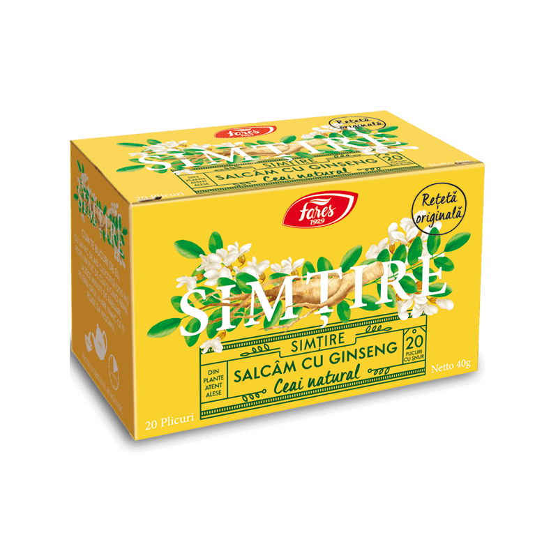 Ceai de reîmprospătat forțele și cugetul. Dulceața florilor de salcâm, pe care românii o descoperă încă din copilărie, se împletește cu puterea revigorantă a rădăcinilor de ginseng – plantă medicinală a orientului îndepărtat.O rețetă originală pentru cei ce cunosc și iubesc ceaiul. Infuzie 100% naturală. Nu conține arome, coloranți sintetici și aditivi.