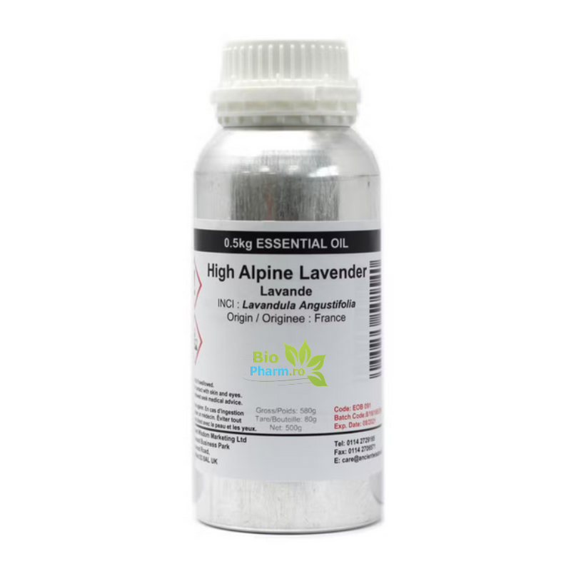 Uleiul Esențial de Lavandă din Alpii Înalți se vinde Angro, este un lichid concentrat care conține compuși aromatici volatili de abur, distilați din plante de lavandă. Lavanda a fost folosită de secole pentru a trata o varietate de afecțiuni, de la leziuni minore, vânătăi și arsuri la boli cronice precum reumatism, astm și dermatită.