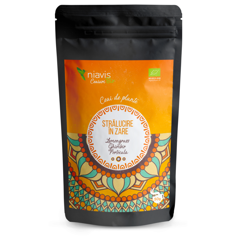 Ingrediente: Lemongrass ecologic (27%), radacina de lemn dulce ecologic, bucati de ghimbir ecologic, coaja de portocala ecologica, menta ecologica, boabe de piper ecologic, hibiscus ecologic