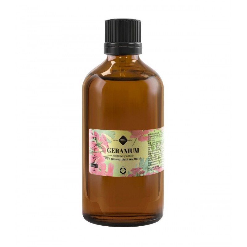Uleiul esențial de Geraniu are un parfum foarte apreciat, intens, cu note dulci-florale. Datorită proprietăților tonifiante, astringente și purifiante pentru piele, este folosit în cosmetică pentru tenul matur, acneic, gras, cu imperfecțiuni, lipsit de tonus și elasticitate. Este de ajutor și în probleme cutanate de natură infecțioasă sau fungică.