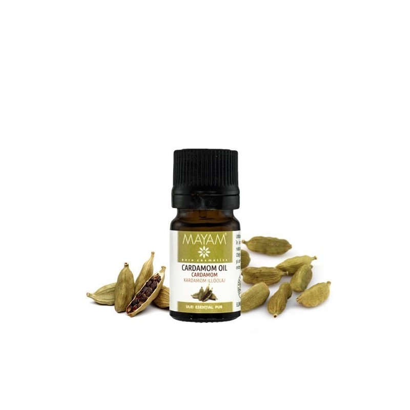 Cardamomul se utilizează ca și condiment cu o aromă puternică și savoare unică, fiind folosită și în Ayurveda pentru tratarea tulburărilor digestive ori ca tonic general. Uleiul esențial obținut din semnințele de cardamom verde este apreciat în aromaterapie pentru efectele de tonifiere a organismului în caz de extenuare nervoasă, letargie, moral scăzut sau oboseală mentală. Este cunoscut și pentru efectul pozitiv asupra sistemului digestiv, stimulează apetitul, este carminativ și antispasmodic eficace. Sub formă de masaj, uleiul de cardamom se folosește pentru a spori bunăstarea emoțională, entuziasmul, încrederea în sine și se remarcă pentru efectul pozitiv în caz de frigiditate sau libidou scăzut, prin favorizarea apetitului pentru viață.