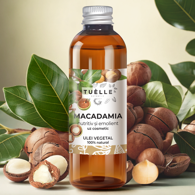 Cunoscut pentru proprietatile sale hidratante si de hranire in profunzime, uleiul de macadamia imbunatateste textura pielii, reducand liniile fine si ridurile, lasand pielea moale, neteda si stralucitoare. Bogat in vitamina E, protejeaza pielea de daunele radicalilor liberi.