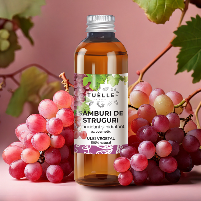 Obtinut din samburi de struguri, acest ulei este recunoscut pentru versatilitatea sa remarcabila si este utilizat pe scara larga in produsele dedicate ingrijirii pielii si a parului. Textura sa lejera, cu absorbtie rapida si finisaj non-gras, ofera o hidratare delicata pielii si lasa parul moale, neted si stralucitor.