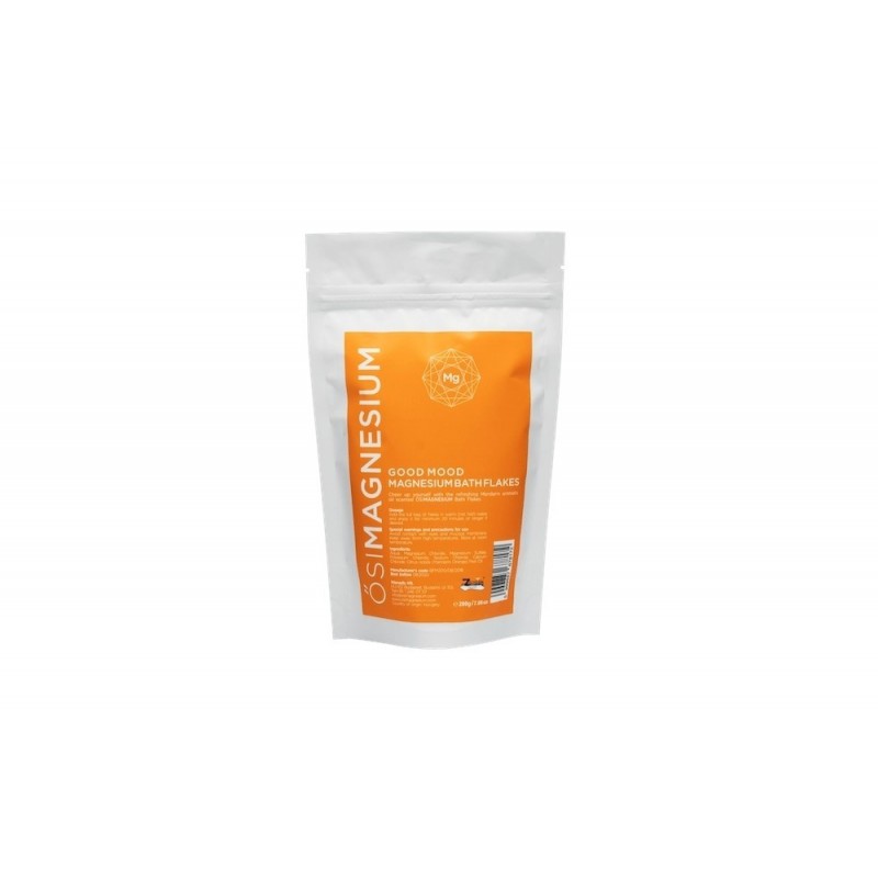 Fulgii de baie cu magneziu Good Mood sunt imbogatiti cu ulei esential de mandarina si ajuta la eliminarea stresului si atingerea unei stari de bine.