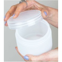 O cutie potrivită pentru creme, scrub, sare de baie, orice produs cosmetic de îngrijire sau igienă preparat în volum mai mare. Material PE natur, translucent.
