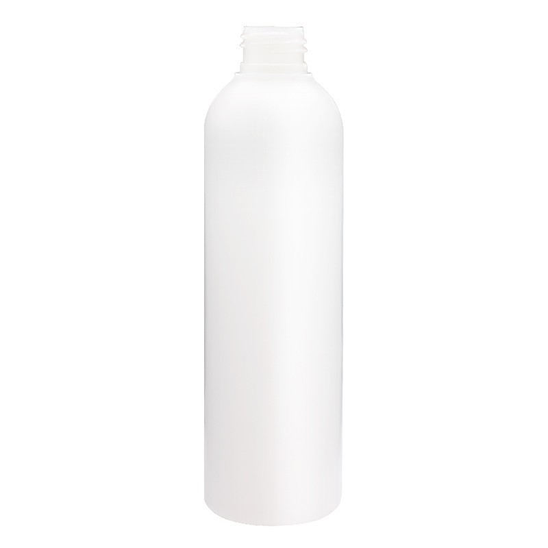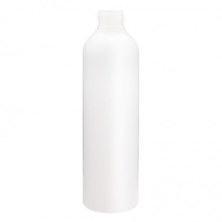 Un flacon estetic și foarte practic, din material HDPE ușor translucent, destinat diferitelor compoziții cosmetice. Se potrivește cu o serie de capace și pompițe din oferta noastră, tip 24/410.