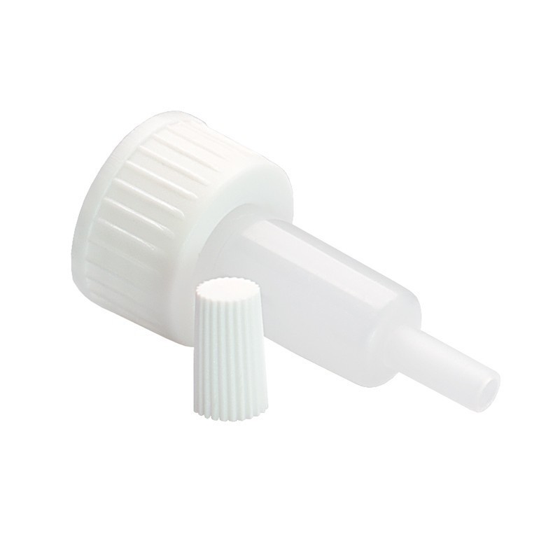 Un căpăcel foarte practic, prevăzut cu filet și picurător extern, potrivit pentru sticluțele brune de 10, 50 și 100 ml din oferta noastră. Pentru seruri și mixuri uleioase sau apoase și pentru dozarea controlată a diverselor ingrediente fluide.