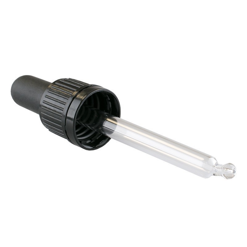 Un capac prevăzut cu pipetă de sticlă cu vârful tip bilă, potrivit pentru sticlele brună și royalblue de 30 ml din oferta noastră. Facilitează aplicarea pe piele a serurilor, mixurilor uleioase, loțiunilor și a altor compoziții fluide.